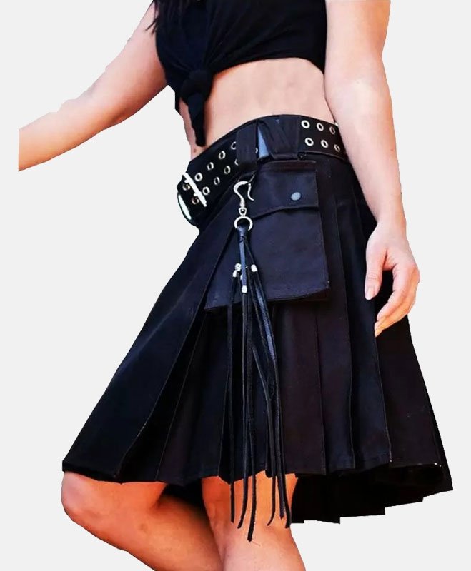 Black Kilt With Cargo Pockets Utility Kilt For Women