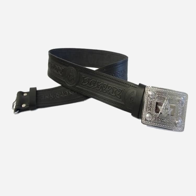 Tag: Black Leather Adjustable Kilt Belt with Celtic Buckle