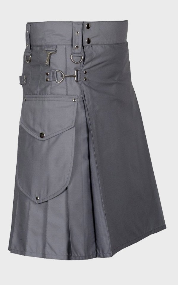 Tag: Dark Grey Modern Utility Kilt with Cargo Pockets