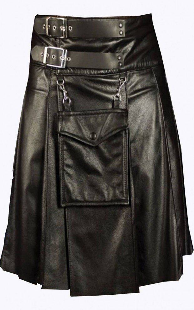 Man Cowhide Black Leather Kilt