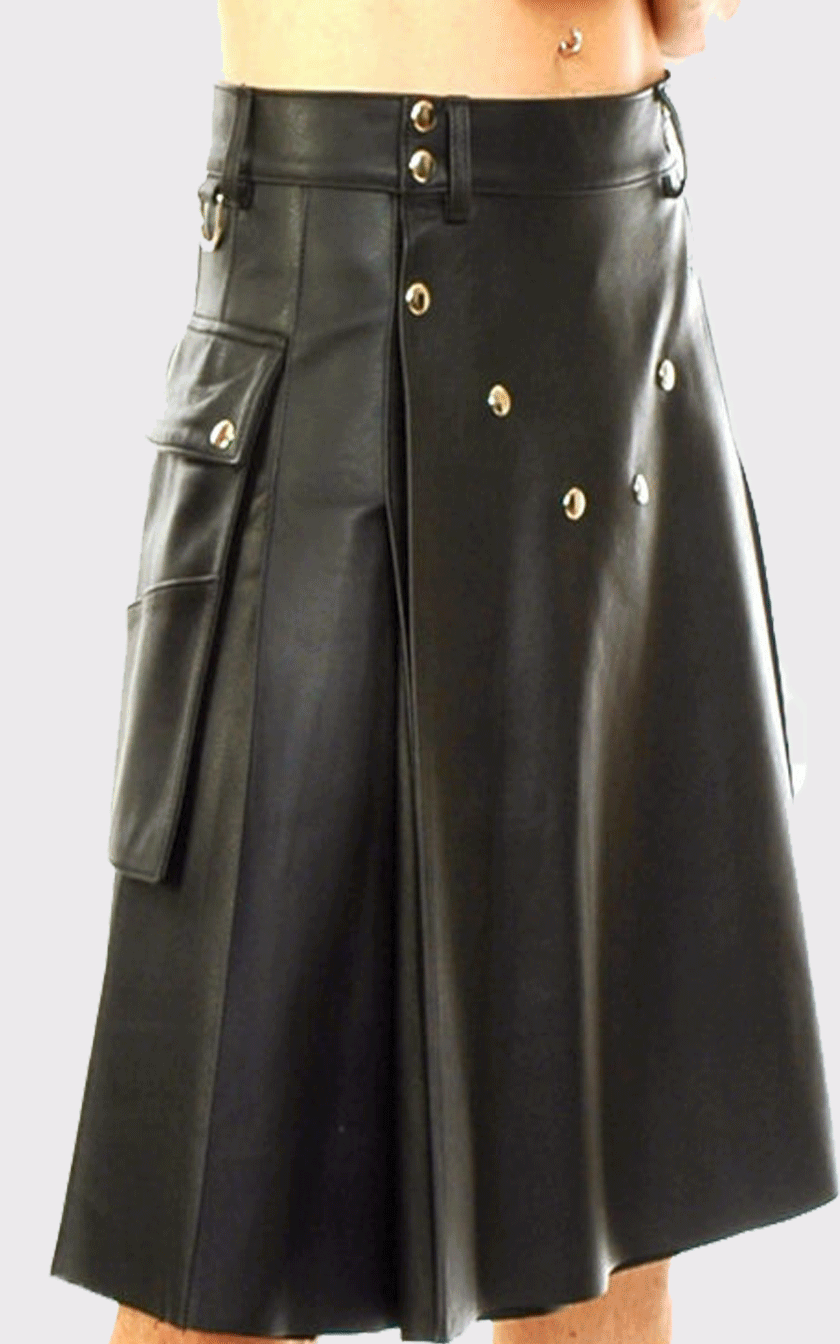 Man Cowhide Black Leather Kilt