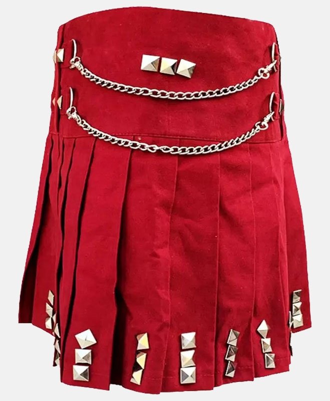 New Red Fashion With Silver Chain Utility Kilt