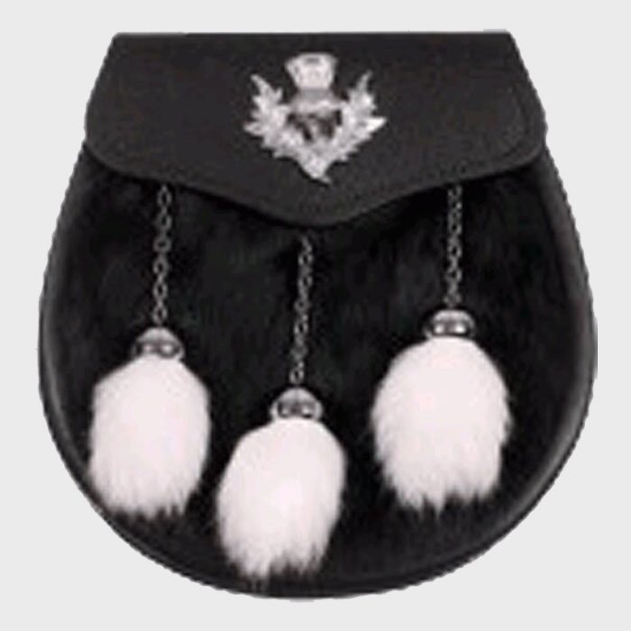 Semi Dress Sporran Black White Rabbit Thistle Badge Sporran – SF4
